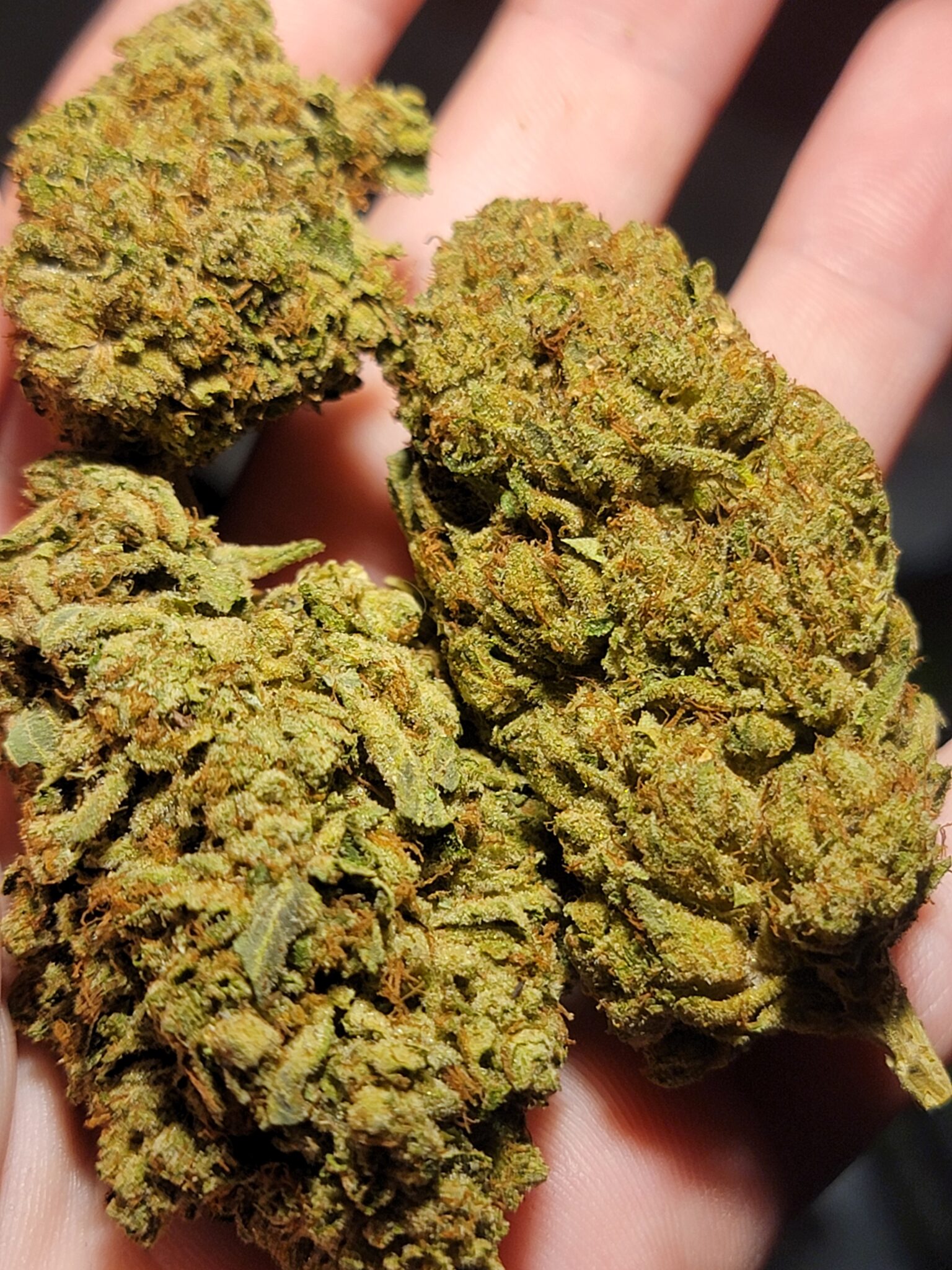 My favorite strain due to the very heavy sativa profile. A day time strain with an energizing effect that is strong only if you consume enough. Notes of citrus and pineapple. Nice lime green structure. Giving 3 stars for finding mold in some of the flower of recent batch. Can’t have that. From an oz looks like 3 to 4 grams were affected. Other than that, one of the best sativa strains you can ever come across.