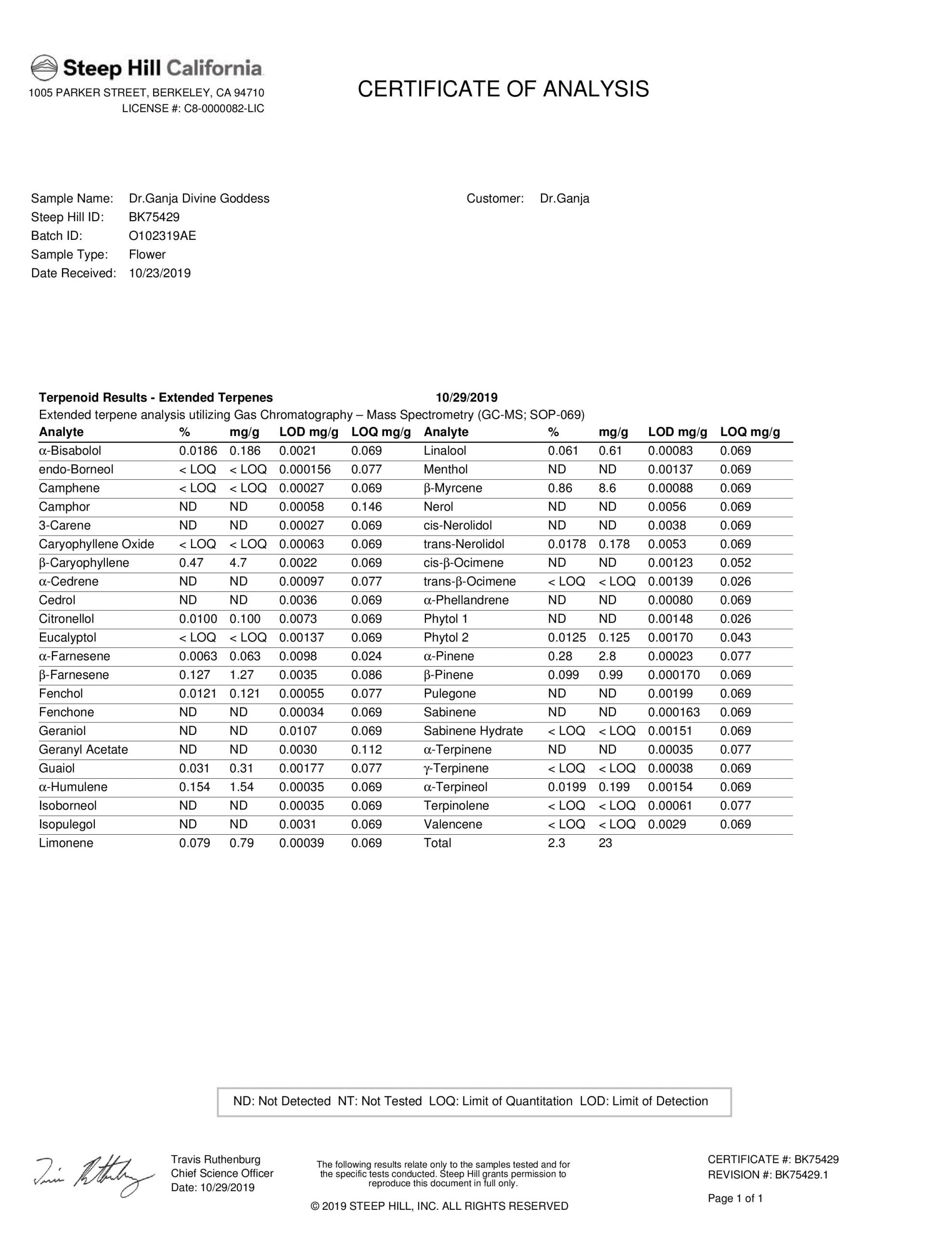 Divine Goddess was also tested for mycotoxins and all tests came back negative, none detected.
