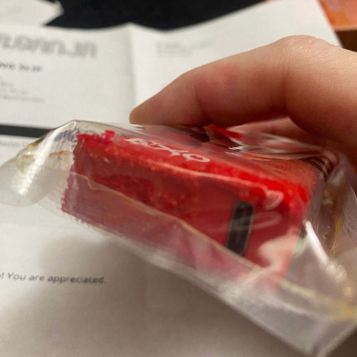 – [ ] Pleasing matte like texture to the red box. I like the way it feels. It’s beyond just basic plastic.