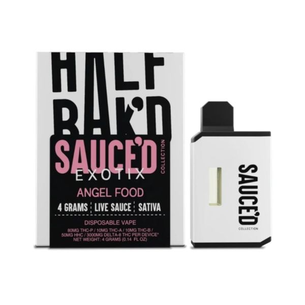 Half Bak’d Sauce’d Exotix Disposable 4g blends consist primarily of high percentages of Delta 8 THC, HHC, THCB and THCP derived from hemp. The assortment of Half Bak’d Sauce’d Exotix Disposable 4g blends are as follows: