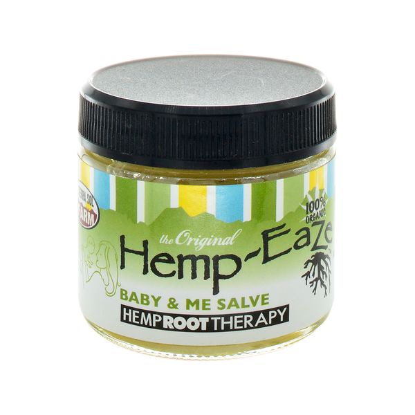 Hemp-EaZe Baby & Me Salve is a great way to follow up after treatments with the Baby & Me Spray. This topical contains hemp root and antiseptic raw honey beeswax because it has soothing qualities. It also has a lot of botanical ingredients to increase the overall efficacy of the salve.