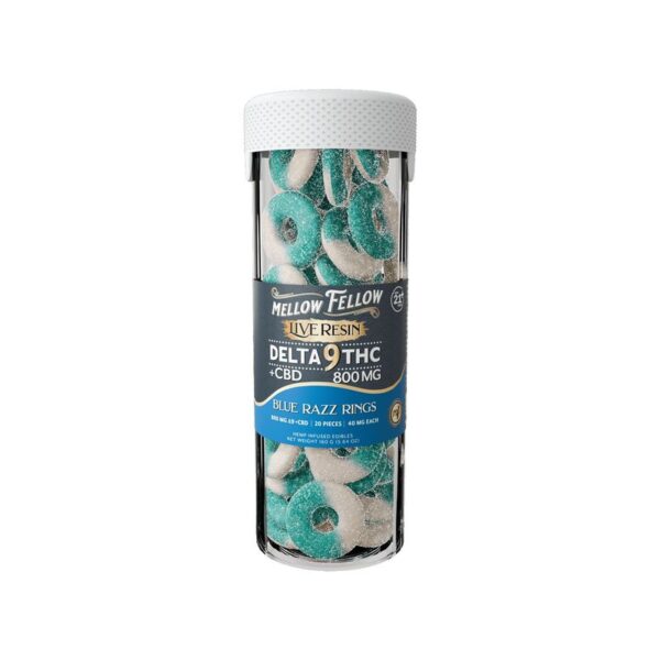Mellow Fellow CBD & Delta 9 Gummies 800mg 20ct consist primarily of high percentages of CBD and Delta 9 THC derived from hemp. Mellow Fellow CBD & Delta 9 Gummies 800mg 20ct blends contain the following active ingredients per serving: