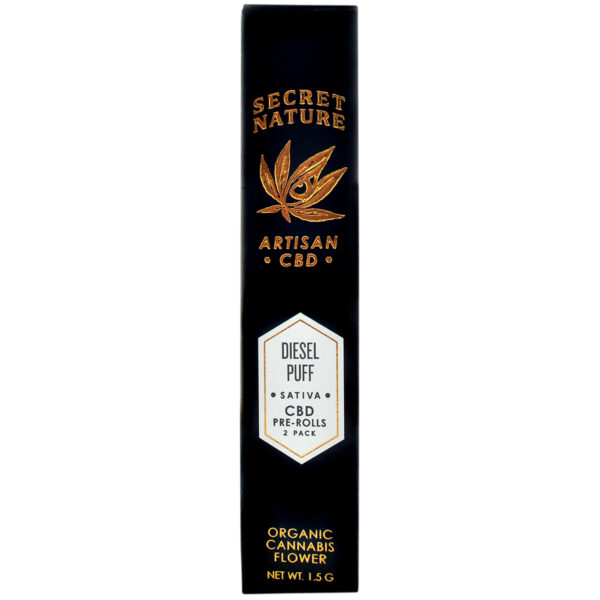 Secret Nature CBD Hemp Flower Pre-Rolls Joints Diesel Puff blends consist primarily of high percentages of CBD derived from hemp. The assortment of Secret Nature CBD Hemp Flower Pre-Rolls Joints Diesel Puff blends are as follows: