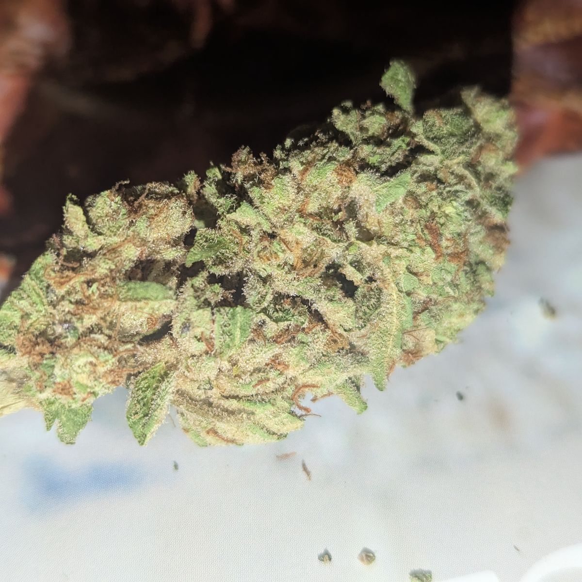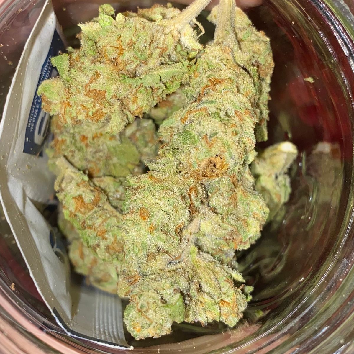 Sparkly buds but the trim needs work. Too much leaf present. Mild effects and slight harshness after partaking.